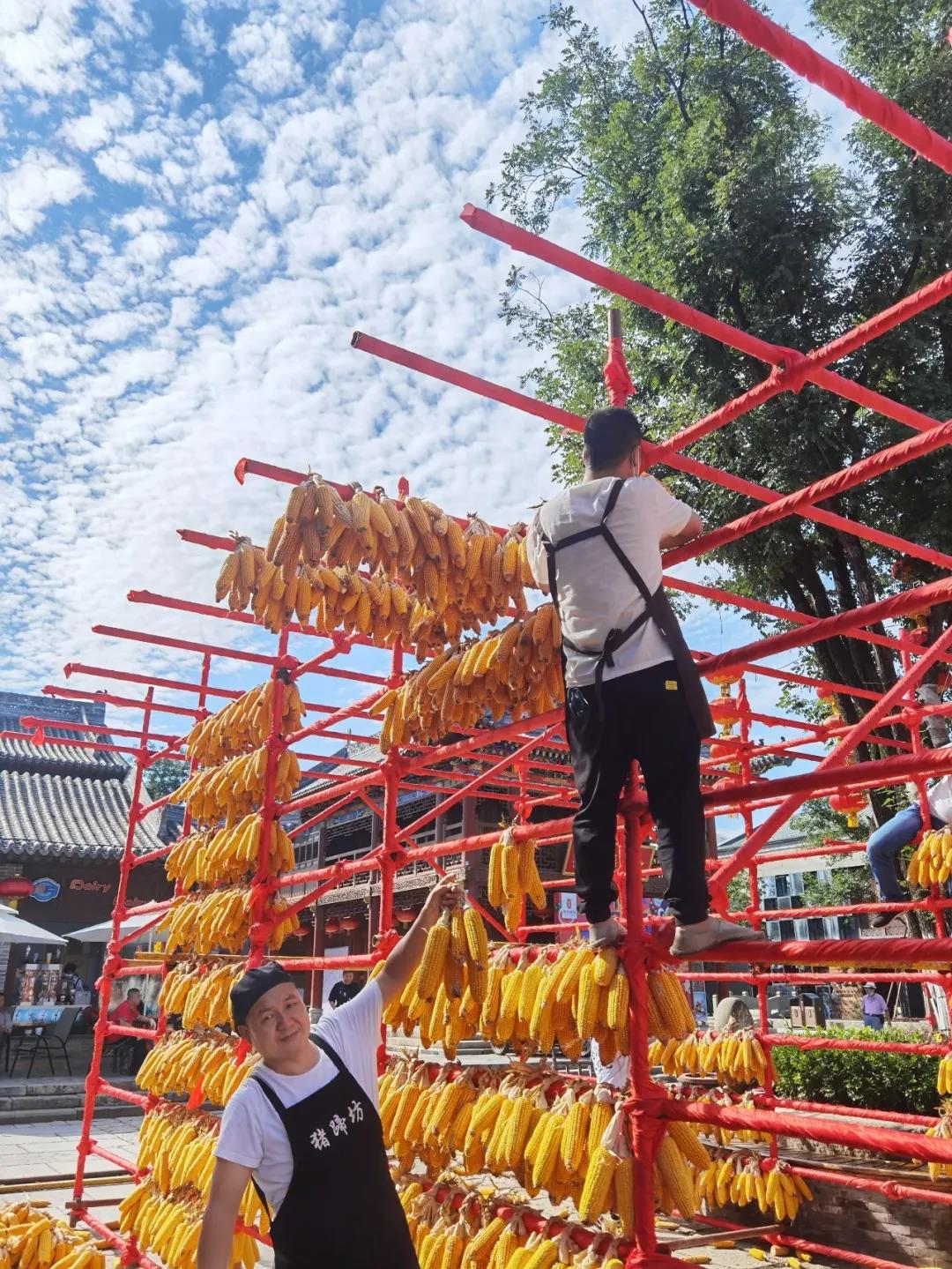 观光长廊被一颗颗成熟的玉米点缀得金黄耀眼